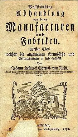 - ↑ Erhard Dittrich: Justi, Johann Heinrich Gottlob. In: Neue Deutsche Biographie (NDB). Band 10, Duncker & Humblot, Berlin 1974, ISBN 3-428-00191-5, S. 707–709 (Digitalisat). Hier S. 708.