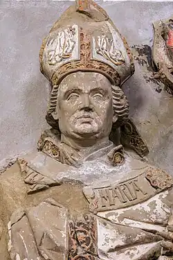 Wappen des Fürstbischofs an der Südwand des südlichen Seitenschiffes im Würzburger Dom. -