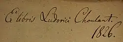 - ↑ Mortimer Frank: Life of Johann Ludwig Choulant. In: History and Bibliography of Anatomic Illustration in its Relation to Anatomic Science and the Graphic Arts by Ludwig Choulant. Translated and edited with Notes and a Biography by Mortimer Frank. The University of Chicago Press, Chicago 1920, S. 6: „The versatility of Choulant is shown by the fact that in 1823 he composed and published anonymously an opera entitled Libussa, Herzogin von Böhmen.“ Textarchiv – Internet Archive.