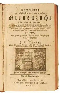- ↑ Johann Ludwig Christ: Anweisung zur nützlichsten & angenehmsten Bienenzucht. Fleischer, 1783, S. 105 (google.de [abgerufen am 19. Mai 2025]).