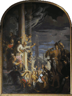 - Pfingstpredigt (Ev. Pfarrkirche Heilig Kreuz, Augsburg), 1674, 272 × 202 cm, Öl auf Leinwand[13]