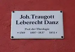 - ↑ Eingeschrieben als „Jo. Traugott Lebrecht Danz“ am 27. April 1787, Matrikel Jena S. 90.