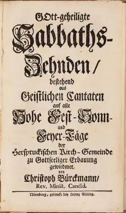 - ↑ Christoph Birkmann (Hrsg.): GOtt-geheiligte Sabbaths-Zehnden. Nürnberg 1728, S. 40–60 (nuernberg.de).
