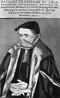 - Theodor Muther: Ferrarius Montanus, Johann. In: Allgemeine Deutsche Biographie (ADB). Band 6, Duncker & Humblot, Leipzig 1877, S. 719 f.