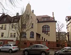 - eigenes Haus in der Friedenstraße 19 in Halle (1901/02, erhalten, Baudenkmal)[4]