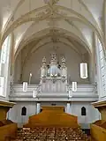 II/P | 33 | Neubau; Gehäuse und Prospektpfeifen im Rückpositiv erhalten[5] |
