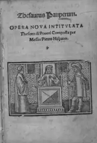 - Thesaurus Pauperum di messer Pietro Hispano. Neuauflage Venedig 1533.