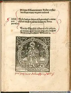 - Libellus perutilis de fraternitate sanctissima et Rosario beate marie virginis. Leipzig 1494, Mainz 1495; Digitalisat