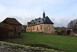 Von der ursprünglich größeren Anlage haben sich ein langgestrecktes, eingeschossiges Wohnhaus aus dem Jahr 1620 mit westlich angrenzendem Nebengebäude, die östlich angrenzende gotische Kapelle St. Georg aus dem 15. Jahrhundert sowie zwei weitere Wirtschaftsgebäude aus dem 18. Jahrhundert erhalten. Die Bruchsteingebäude waren ursprünglich verputzt und haben Fenster- und Türgewände aus Sandstein. Eingeschlossen wird die Anlage von einer Bruchsteinmauer.