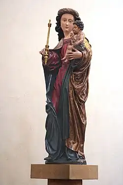 Der Altarraum der vierjochigen Pfeilerbasilika wurde von dem Bildhauer Hubert Elsässer gestaltet. Die alte hölzerne Kirchenausstattung ist im Krieg von 1794 weitestgehend verbrannt worden. Neben dem Altar steht eine Madonna mit Kind, deren Haupt von einem Perlenturban geschmückt ist.