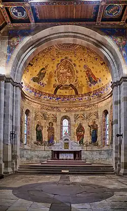 Aus der romanischen Zeit lassen sich im Innenraum nur noch wenige Zeugnisse finden. Die Innenausstattung ist vor allem neoromanisch. Ab 1870 wurden Wand-, Decken- und Glasmalerei, Hochaltar, Seitenaltar, Ambone, Kirchenbänke, Westempore und Orgel neu geschaffen.