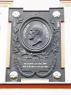 John A. Roebling (Porträt von Franz Krüger, 1855)Gedenktafel an Roeblings Geburtshaus in Mühlhausen