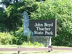 John Boyd Thacher State Park ist ein State Park 15 mi (24 km) südwestlich von Albany in New York, in der Nähe von Voorheesville, im Albany County an der Route 157. Der Park erstreckt sich hauptsächlich über das Helderberg Escarpment und bietet eine Reihe von landschaftlich schönen Wanderwegen mit Panorama-Aussichten über die Green Mountains in Vermont und die Taconic Mountains des Hudson Valley.