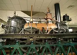 Der zylindrische, 1067 mm lange Kessel ist liegend als Langkessel auf dem Rahmen positioniert und hat am vorderen Ende als eine der ersten Ausführungen dieser Art eine abgeteilte Rauchkammer, aus der der Rauchabzug nach oben herausführt. Der Kessel ist von 62 Heizrohren mit einem Durchmesser von 50,8 mm durchzogen, die die Wärme der Abgase auf dem Weg von der Feuerbüchse zur Rauchkammer auf das umgebende Kesselwasser übertragen. Die Gesamtheizfläche dieser Heizrohre beträgt fast 20 Quadratmeter. Die am hinteren Ende gelegene 1093 mm lange und 966 mm breite Feuerbüchse ist für die Feuerung mit Brennholz vorgesehen und hat an den Berührungsstellen zum Kesselwasser eine Heizfläche von etwa 3 Quadratmetern.