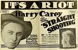 John Ford machte seine erste Regiearbeit für den 20-minütigen Western The Tornado im Jahr 1917 für das Filmstudio Universal Studios. Er spielte auch selbst die Hauptrolle (seine kurze Laufbahn als Filmschauspieler beendete er noch Ende 1917). Laut Fords Aussage hatte Universal-Chef Carl Laemmle dem 23-jährigen den Job gegeben, weil er so gut schreien könnte. Zu diesem frühen Zeitpunkt der Filmgeschichte war es zudem noch recht leicht, verschiedene Aufgaben beim Film einfach auszuprobieren. In den ersten Jahren seiner Karriere drehte Ford viele eher kleinere Filme: zehn Filme im Jahr 1917, acht Filme im Jahr 1918 und fünfzehn Filme im Jahr 1919. Er erhielt jedoch zunächst nur selten eine Erwähnung als Regisseur im Vorspann. Sein erster Film in Spielfilmlänge war der Western Straight Shooting mit Harry Carey in der Hauptrolle. Zwischen Ford und Westernfilm-Star Carey, der auch ein Vorbild für John Wayne war, entspann sich eine lebenslange Freundschaft. Sie drehten zusammen rund 25 Filme, ausschließlich Western.