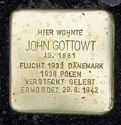 1933 wurde er als Jude mit einem Berufsverbot belegt. Nach einigen Jahren in Dänemark zog er nach Krakau. 1942 wurde John Gottowt von einem SS-Offizier in Wieliczka ermordet, wo er sich als römisch-katholischer Priester getarnt versteckt hielt.[1]