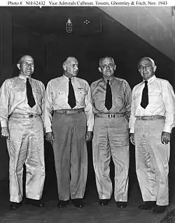 Im Anschluss wurde Towers am 1. Februar 1946 als Nachfolger von Admiral Raymond A. Spruance schließlich selbst Oberbefehlshaber der Pazifikflotte (US Pacific Fleet) mit dem Flugzeugträger Bennington als Flaggschiff. Diesen Posten bekleidete er bis zu seiner Ablösung durch Admiral Louis E. Denfeld am 28. Februar 1947. Am 1. Januar 1947 wurde er zudem in Personalunion Oberkommandierender des neu geschaffenen US-Pazifikkommandos (US Pacific Command) und wurde auch in dieser Verwendung am 28. Februar 1947 durch Admiral Louis E. Denfeld abgelöst.[5] Daraufhin fungierte er noch von März bis zu seinem Eintritt in den Ruhestand am 1. Dezember 1947 als Vorsitzender des Allgemeinen Marineausschusses (General Board of the United States Navy), einem Beratungsgremium der US Navy.