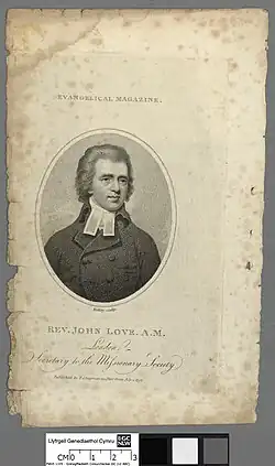 - Addresses to the people of Otaheite: designed to assert the labour of missionaries, and other instructors of the ignorant; to which is prefixed a short address to the members and friends of the Missionary Society in London / by John Love, Minister of the Scots Presbyterian Congregration, Artillery Lane, Bishopsgate Street, and Secretary to the Mission Society. London 1796[7]