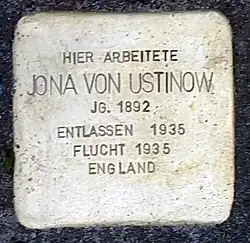 Mit der Machtergreifung der Nazis wurde die Stellung für den völlig anders eingestellten Jona von Ustinov zunehmend schwierig. 1935 verlor er schließlich seine Anstellung in der Botschaft, weil er sich weigerte, einen Ariernachweis zu erbringen, der dem Auswärtigen Amt seine äthiopischen und jüdischen Vorfahren bekannt gemacht hätte. Daraufhin ließ er sich und seine Familie in Großbritannien einbürgern.