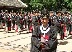 - ↑ a b Royal ancestral ritual in the Jongmyo shrine and its music. UNESCO Intangible Cultural Heritage, 2008, abgerufen am 19. Januar 2024 (englisch).