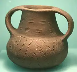 Hoher, rundbodiger Krug mit einem (Böhmen) oder zwei (Schlesien) randständigen Henkeln. Reiche Verzierung mit eingeritzten bzw. eingestochenen Mäandern oder Winkelbändern (in Böhmen z. T. ausgespartes Winkelband). Daneben auch unverzierte Schalen mit hohem Standfuß, Schalen mit eingebogenem Rand, Knickrandschalen und Amphoren.