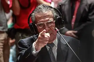 José Efraín Ríos Montt [efɾaˈin ˈri.os ˈmont] (* 16. Juni 1926 in Huehuetenango, Guatemala; † 1. April 2018 in Guatemala-Stadt) war vom 23. März 1982 bis 8. August 1983 diktatorisch regierender Präsident von Guatemala.[1][2] Ríos Montt wurde am 10. Mai 2013 wegen Völkermordes und Verbrechen gegen die Menschlichkeit zu 80 Jahren Gefängnis verurteilt. Er gilt damit als der erste Politiker, der wegen eines Völkermords im eigenen Land von einem einheimischen Gericht verurteilt wurde. Das Urteil wurde am 20. Mai 2013 vom Verfassungsgericht Guatemalas wegen juristischer Verfahrensfehler aufgehoben und eine neue mündliche Verhandlung angeordnet.[3] Noch vor Abschluss des zweiten Prozesses starb Ríos Montt im Hausarrest.