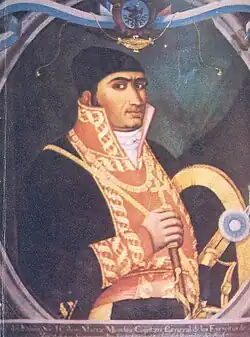 José María Morelos y Pavón (* 30. September 1765 in Valladolid, heute Morelia, Michoacán; † 22. Dezember 1815 in Ecatepec, Mexiko) war Priester und eine herausragende Führungspersönlichkeit im Kampf um die Unabhängigkeit Mexikos. Sein äußeres Erkennungszeichen war ein um den Kopf gewundenes Tuch.