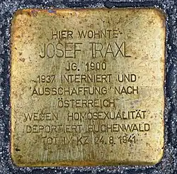 - ↑ a b c d Biografie von Josef Alfons Traxl. www.stolpersteine.ch, Webseite Verein Stolpersteine Schweiz, verfasst am 25. November 2020, abgerufen am 16. Oktober 2021.