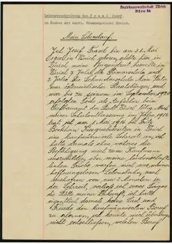 Schließlich vermerkte die Behörde am 9. Februar 1937, dass Traxl zum vierten Mal wegen Übertretung der Ausweisung in der Schweiz aufgegriffen worden sei und sich in Untersuchungshaft befinde. Auf deren Aufforderung hin schrieb er einen eigenhändig und in Schreibschrift verfassten Lebenslauf, der nähere Einblicke in das ansonsten nur von polizeilicher Seite dokumentierte Leben ermöglicht.