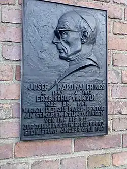 Gedenktafel für Josef Kardinal Frings an der Pfarrkirche von Köln-Fühlingen
