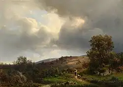 - Heidelandschaft mit Schafhirt vor dem Gewitter
