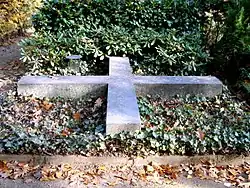1950 hatte Beuys nach einem Entwurf von Ewald Mataré für die Grabstätte eine stehende Grabplatte, eine Schiefertafel in der Gestalt eines großen Vogels, für Ophey und seinen frühzeitig verstorbenen Sohn Ulrich Nikolaus ausgeführt.[38] Die heutige Grabplatte, die in ihrem Ursprungszustand im Jahr 1950 im unteren Teil noch ein Kreuz trug,[38] wurde bis 1978 um die Namen von Opheys Ehefrau Bernhardine Bornemann (1879–1968) sowie Georg und Luise Pehle ergänzt. Sie befindet sich, wie gleichfalls ein für den verstorbenen Karl Wiedehage, ehemaliger Chefarzt am Dominikus-Krankenhaus in Düsseldorf-Heerdt, geschaffenes Grabkreuz von 1970, auf dem Heerdter Friedhof.[39][40] Wiedehage hatte Beuys Anfang der 1960er Jahre eine Niere entfernen müssen, nachdem er in seinem Klever Atelier, das Beuys bis 1964 nutzte, beim Reinigen des Ofenrohrs gestürzt und mit dem Rücken auf den Rand des Kohleofens gefallen war.[41]
