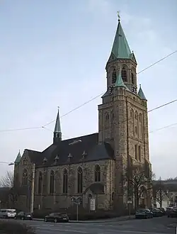 | Pfarrkirche St. Jodokus Die Grundsteinlegung für die Pfarrkirche St. Jodokus erfolgte im Juni 1909. Im Oktober 1910 wurde die Kirche von Bischof Karl Joseph Schulte eingeweiht. |