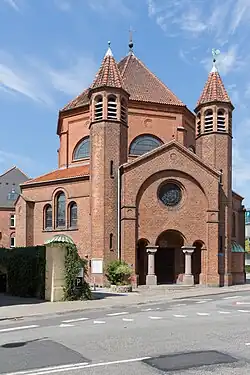 | Pfarrkirche Heilig Kreuz 1898 wurde der Grundstein für die Pfarrkirche Heilig Kreuz gelegt. Die Kirche konnte 1902 eingeweiht werden. |