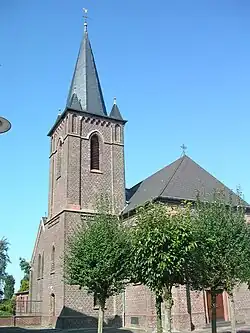 | Teilneubau der Pfarrkirche St. Lambertus Der Turm und Chor stammen aus dem 14. Jahrhundert. Von diesem wurden bei dem Neubau von 1912 der im 19. Jahrhundert erhöhte Westturm, sowie das Chorjoch mit 3/6-Schluss übernommen. |