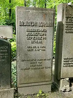 Am 8. Juni 1933 verstarb Joseph Lehmann infolge eines Herzinfarkts. In Nachrufen wurde er als „Führer des deutschen Reformjudentums“[15] bezeichnet. Er wurde am 11. Juni 1933 in der Ehrenreihe des Jüdischen Friedhofs in Berlin-Weißensee beigesetzt.