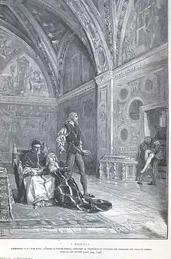 - ↑ Joachim Brambach: Die Borgia: Faszination einer machtbesessenen Renaissance-Familie. Callwey, München 1988, ISBN 3-7667-0906-2, S. 132.