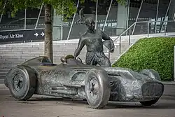 - Zum 75. Geburtstag des Nürburgrings schuf der katalanische Künstler Joaquim Ros Sabaté (* 1936) im Jahr 2002 eine lebensgroße und mehrere Tonnen schwere Bronzeskulptur; Auftraggeber waren Mercedes-Benz, die Fundación Juan Manuel Fangio (Balcare, Argentinien) sowie das spanische Mineralölunternehmen Repsol. Die Plastik stellt Fangio neben seinem Mercedes-Benz W 196 dar, mit dem er 1955 Weltmeister wurde.[17] Drei originalgetreue Repliken dieser Skulptur befinden sich an europäischen Formel-1-Rennstrecken: Circuit de Barcelona-Catalunya (Montmeló, Spanien), Circuit de Monaco (Monte Carlo, Monaco) und Autodromo Nazionale di Monza (Monza, Italien); zwei weitere Kopien stehen am Mercedes-Benz-Museum in Stuttgart-Untertürkheim sowie in Buenos Aires.