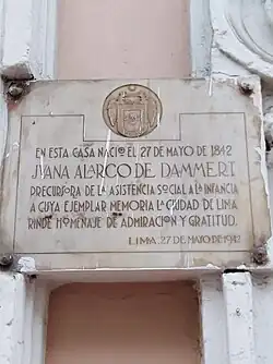 - ↑ Empresa Peruana de Servicios Editoriales S. A. EDITORA PERÚ: Municipalidad de Lima rinde homenaje a Juana Alarco de Dammert. Abgerufen am 19. August 2022 (spanisch).
