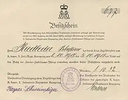 - Regimentsvereinigung 2. Bay. Inf. Rgt.: Text Verleihungsurkunde, 1932