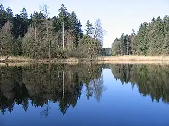 Zur zweiten Etappe verlässt man Neukirch durch eine waldreiche Hügellandschaft in Richtung Oberrussenried. Vorbei am Holzweiher (