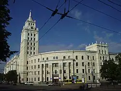 Hauptsitz der JuWSchD in Woronesch mit dem charakteristischen Uhrturm, einem Wahrzeichen der Stadt