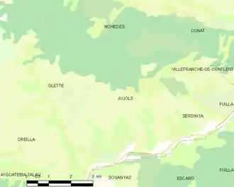 Nachbargemeinden von Jujols sind Nohèdes im Norden, Serdinya im Osten und Olette im Westen.