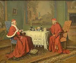 Jules Benoit-Lévy war ein Maler, der sich in verschiedenen Genres versuchte. Besonders bekannt sind seine Darstellungen von Kardinälen in alltäglichen Situationen, ein damals beliebtes Thema. Seine Werke zeigen oft eine genaue Beobachtung der Atmosphäre, manchmal in hellen, leuchtenden Farben, grün oder orange, manchmal grau und in Nebel gehüllt. Um 1900 reist er in die Niederlande und hält sich auf der Insel Marken auf, wo etwa fünfzig Gemälde entstehen, die das Alltagsleben und typische Interieurs darstellen. 1902 stellt er fünfzig dieser Bilder in Paris aus.