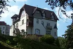 - ↑ Nach 1950 bis 1990 war die innen komplett umgebaute Villa Internat für Schüler der Erweiterten Oberschule Ernst Abbe, dann nach mehrjährigem Leerstand wurde sie innen erneut umfassend als Mietwohnungshaus umgestaltet.