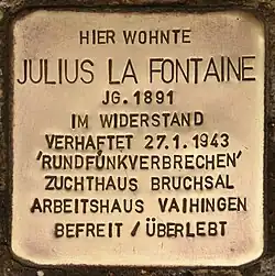 - Eberhard Stegerer: Julius La Fontaine. Jurist in der badischen Polizei, Demokrat und im Widerstand zum NS-Regime, Göttingen: Cuvillier 2018, ISBN 978-3-7369-9876-6.