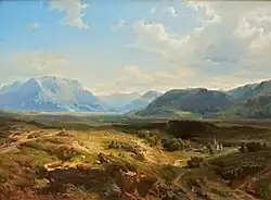 - Gebirgslandschaft mit zwei Raubvögeln am Fluss, 1856