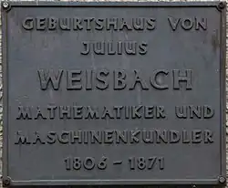 - ↑ Elias Wegert, Udo Hebisch, Werner Lyska: Julius Weisbach als Wegbereiter der angewandten Mathematik. (PDF; 2,1 MB) Archiviert vom (nicht mehr online verfügbar) am 24. Dezember 2013; abgerufen am 17. Oktober 2012.