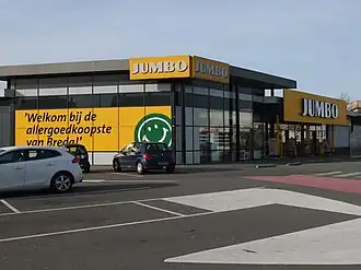 Jumbo ist eine Supermarktkette aus den Niederlanden der Jumbo Groep Holding B.V., die zur Stichting Administratiekantoor Van Eerd Groep Holding gehört. Mit einem Marktanteil von 21,8 % ist sie der drittgrößte Lebensmitteleinzelhändler in den Niederlanden, ist aber seit 2019 auch in Belgien vertreten.[1][2][3] Im Jahr 2022 arbeiteten dort 41.234 Menschen.[4] 2022 betrug der Gewinn für die Gruppe 686 Millionen Euro bei einem Umsatz von 10,276 Milliarden Euro. Es wurden 712 Supermärkte, davon 27 in Belgien[5] und 69 Restaurants betrieben.[4]