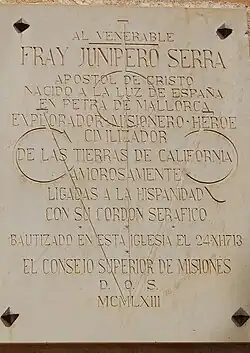 - Fra Juníper Serra, Gründer der Missionsstationen in Kalifornien – Petra – Mallorca
